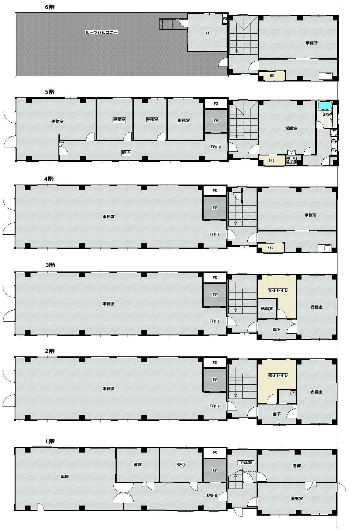 備 考 1棟貸(6階建て) 1階車庫あり 2月末退去予定 間取り変更の可能性あります